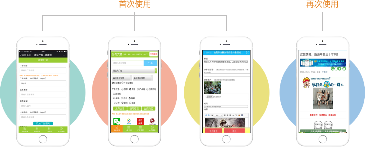 在朋友圈進行轉(zhuǎn)發(fā)、分享、讓精彩文章帶著你的廣告在朋友圈快速傳播、曝光。